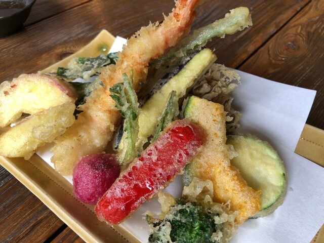 野菜天ぷら盛合せは800円から680円に値下げされていて、量が減っていた。
