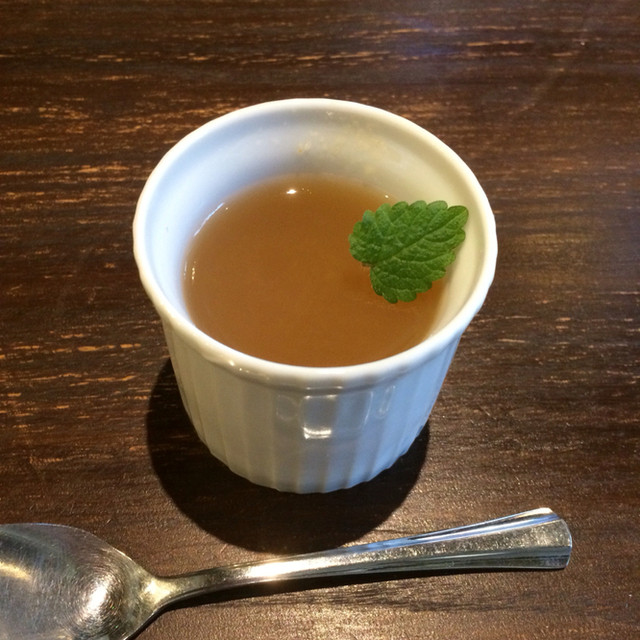 少ししてハンバーグが出されました。正直言ってハンバーグなどどこで食べても余り変わらないだろうと思っていましたが、ここのハンバーグは本当に肉々しくて、「あぁ、ハンバーグってこんなにおいしいものだったのか」と目から鱗でした。1500円は決して高くない。付け合わせにニンジン、カブ、ゆで卵、チリビーンズ、さやえんどう、ポテトサラダ、ミニトマトがついていますが、本当に上品な味付けで、ハンバーグのソースとのバランスが絶妙です。