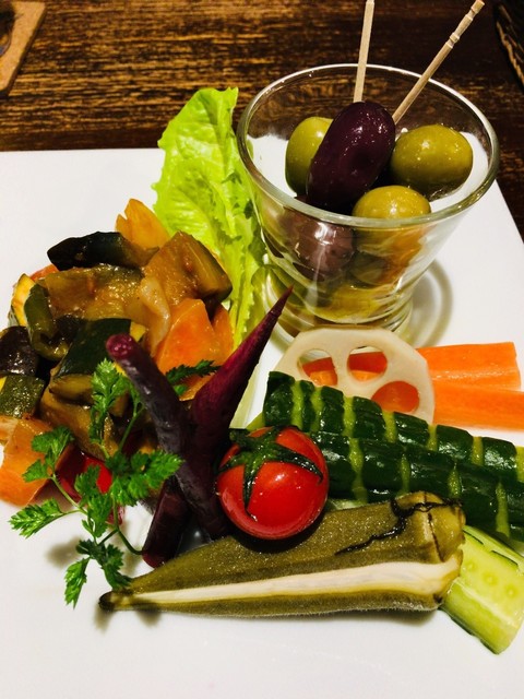 三種盛り(オリーブ、ラタトゥイユ、ピクルス)(850円)