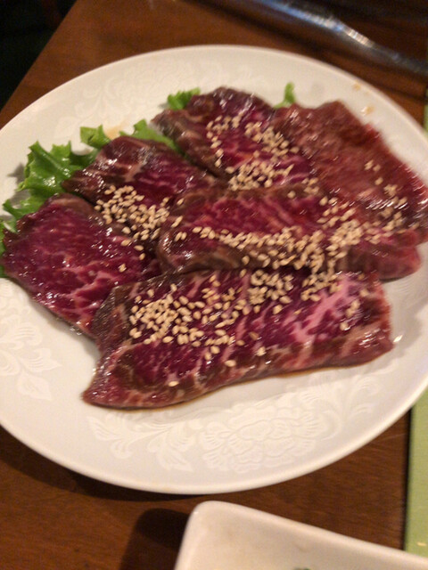 タン塩、上ハラミが来て、後ろのテーブル席空いたので移動させてくれた。