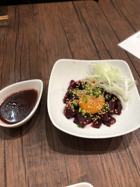 鯨ユッケは馬刺しユッケみたいにあっさりで美味しい。