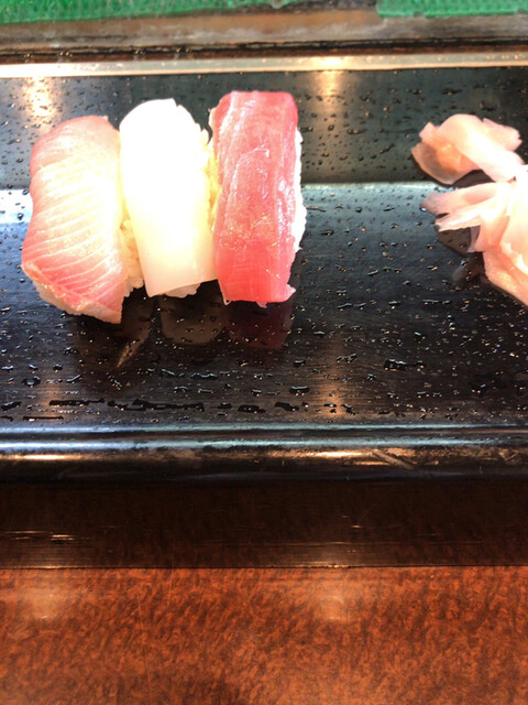 お目当ての限定20食のAランチを頼むと、ガリが出されて間もなくお寿司が次々に出てくる。