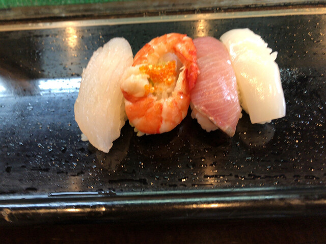 ウマヅラハギの肝乗せやフグ等豪華でどれも美味しいお寿司。
