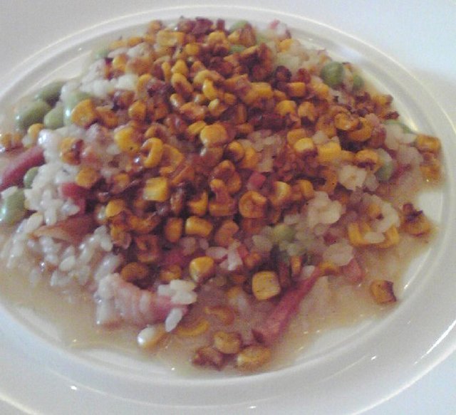そして、ベーコン・コーン・枝豆のリゾット。珍しい組み合わせです。