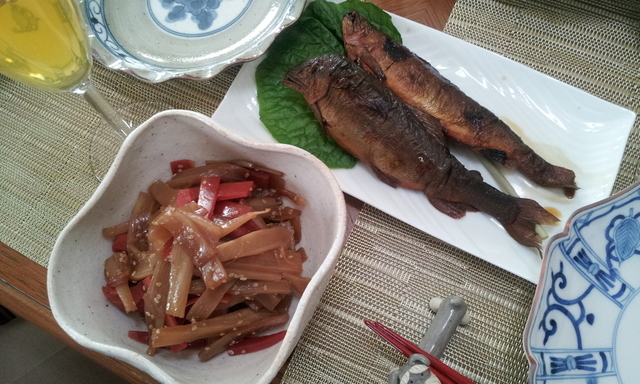 自家製ウドのきんぴら、菊乃井鮎