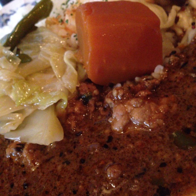 温野菜もとろけるように柔らかいニンジン、キャベツなどキーマとの味のバランスも良い。