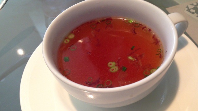 このコンソメスープは+100円で飲めるならば絶対オーダーすべきである。