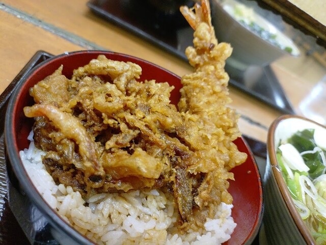 丼の中で熱々の春菊天がはぜてる音がし食欲を刺激します。