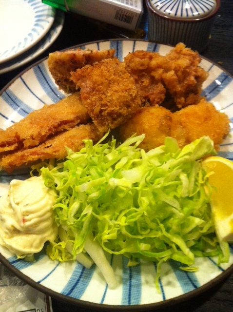 ハムカツ、メンチカツ、アジフライどれにしようか悩んだらフライ盛り合わせをお勧めします。