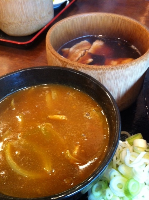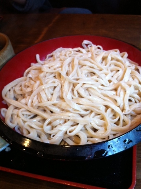 つけ麺でいうところの全粒粉を使用した麺のように、少し灰色っぽい麺がまさに武蔵野うどんの特徴で、手打ちなので、不揃いな感じで「すする」と言うよりも「食べる」とか「噛む」という表現が合っている。