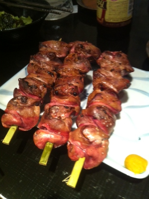 うちに来たら絶対食べてほしいと勧められた、鶏レバーの串焼き!