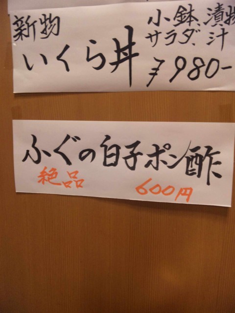 おすすめ品から、刺身やふぐの白子などを注文して、どれも美味しかったのですが、 なかでも