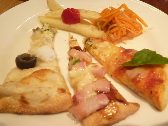 2015.8.14再訪シーフードピッツァ、ベーコンとアスパラの照り焼きピッツァ、マルゲリータ