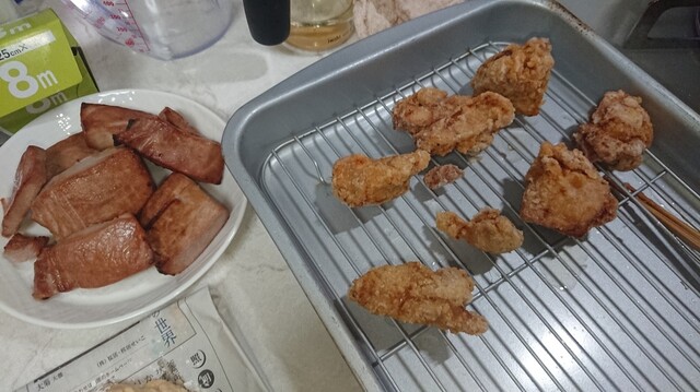 から揚げは思ったより肉が小さいのでこれも何種類かに切り分け、