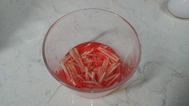 昆布と共に入ってる生姜は刻んだ後に梅酢に数十分漬けて同じ色になるように。
