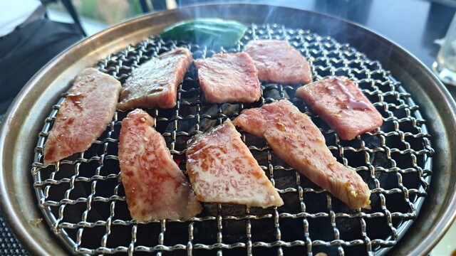 カルビの江之浦のお肉と皆で味見をしながら楽しめるのも網焼きの良いところ。