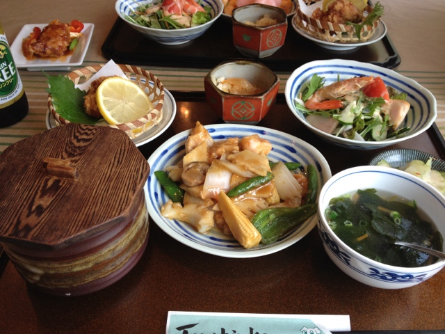 お昼の日替わり定食は曜日で変わるので、近くに住んでいたら毎日通って楽しみたいくらいです。今回は休日のお昼に行き定食を頼みました。ご飯、酢豚、白身魚の天ぷら、ザーサイ、酢物、スープ、デザートで1000円ちょいでした。お昼に行くとたまに庭先で珍しい物が見れるかも知れません。