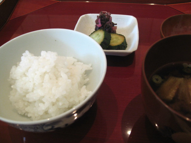 食事【白飯、焼き茄子の赤出汁、香の物】