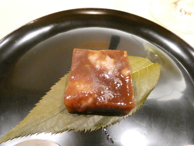 水羊羹の中に道明寺が入ってるという、桜餅の逆バージョン。