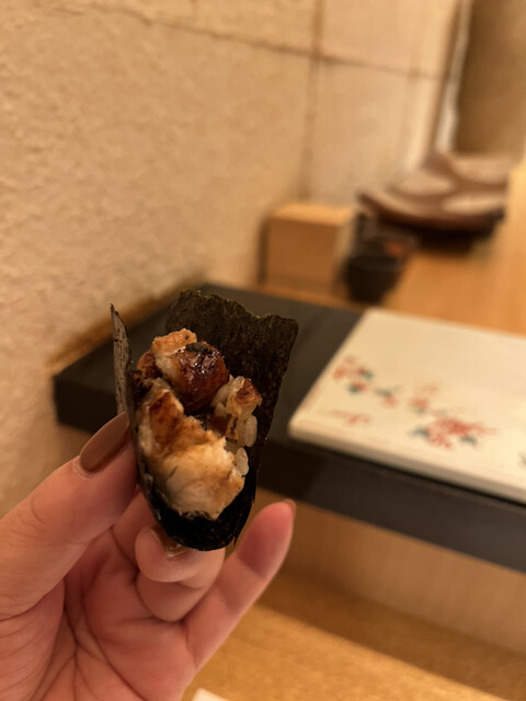 後で宮城の一番摘みの海苔を巻いて、大将が、手のひらに乗せてくださったんですが、これがまた海苔の香りが、すんごく良くて、穴子の旨さが、倍増です♡♡