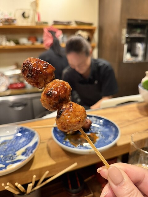 小ぶりなつくねが3個、串に刺さってましたが、表面はカリッと焼かれてますが、食べるとふわふわ〜!