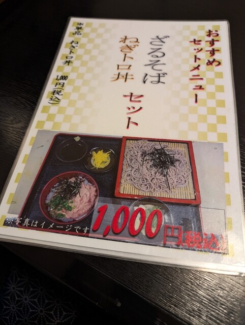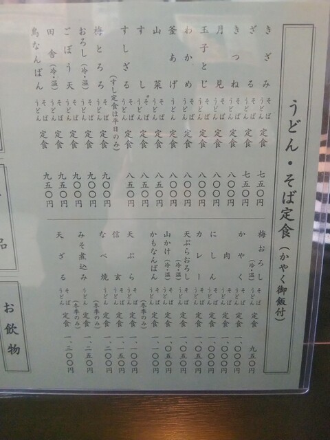 さて座敷に座った我ら夫婦はメニューを見ながら5分くらい悩みましたが、結局家内はごぼ天うどん¥650を、私は寿司盛り合わせざるそばセット¥800を注文させて頂きました♪