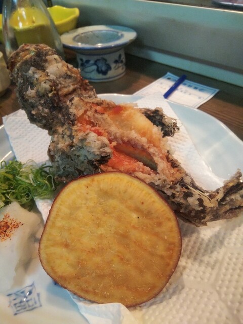 この日は牛肉ユッケとオコゼの唐揚げ、それと鮪の剥き身を頼んで美味しく頂きました(^o^)/