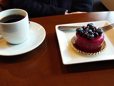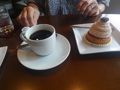 今日は、イチゴタルト(460円)とコーヒー(300円)、ショコラバニーユ(550円)とコーヒー(300円)をいただきました。