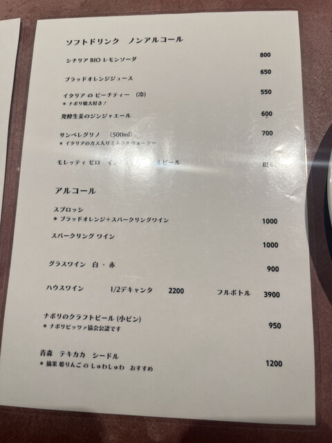 1人1ピザ1ドリンクを注文です。今回は主人と行ったので、マルゲリータとDOC(水牛のマルゲリータ)にピーチティーとシチリアBIOレモンソーダを注文しました。
