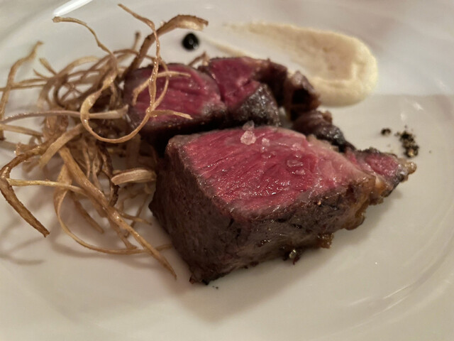 今回の料理ではカリフラワーのムースとコンソメのジュレが清涼感溢れて美味しかった。