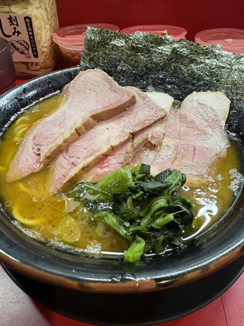 後ろに並んだ人たちは初訪問のようで、入店してからも生姜やにんにくなど卓上の味変アイテムに興味津々の様子。