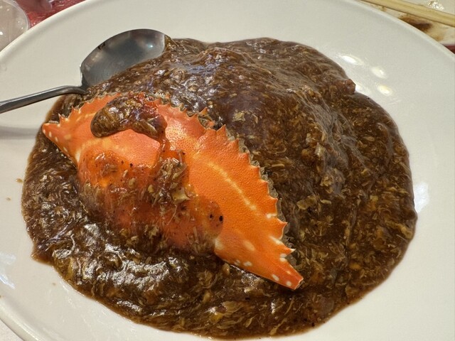 そして蟹あんかけチャーハン。この日は佐賀の蟹だった。夏は蟹の濃厚さが薄れるのであわびの肝を加えているとのこと。さすがスペシャリテだ。これがかつては1,000円、いまも1,500円(税別)なのは安すぎる。