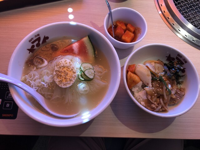 たまたま開店直ぐに入ったら冷麺まつり最終日だったので冷麺を注文、それと焼肉と御飯も、