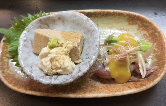 たまたまひと席空いていたので着席。酒肴のセットを注文した。いや、びっくりするほど味が良い。酒のアテになるだけあって少しハッキリした味ではあるが素材の味を十二分に引き出す料理は圧巻。胡麻豆腐もコクがあって後味もスッキリ。酢味噌は芥子が効いているがしつこくない。牡蠣の天ぷらは心配だったがクサミが全くなく美味い。