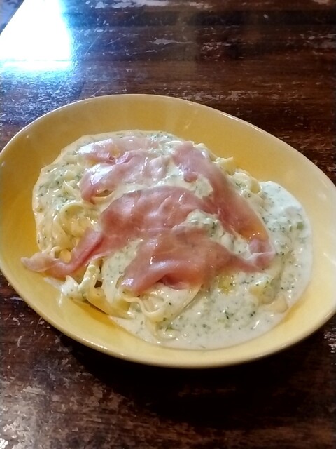 ぶっといモチモチ太麺の生麺とクリームソースが絡んで激ウマ!!
