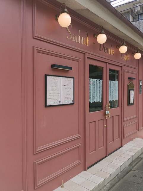 ピンクの壁と扉が可愛いカフェ。あのクレープやさんの隣です。