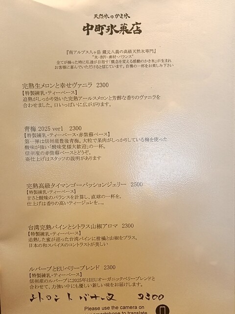 種類は、先日行ってる、他店のかき氷やさんと比べると少ないのですが、