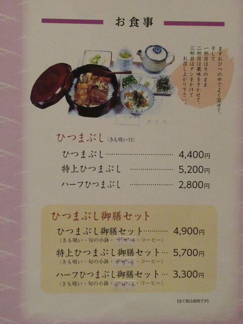 メニューを見て 自分とカミさんは、うなぎ常念御膳セットを、義妹と義妹の連れ合いは、うなぎ大黒屋御膳セットを頼んだ。