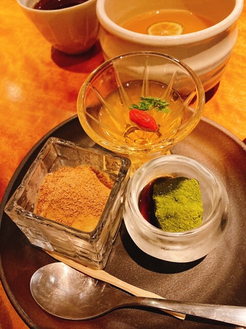デザート3種も嬉しい。さっぱり梅ゼリー特に美味しかった。