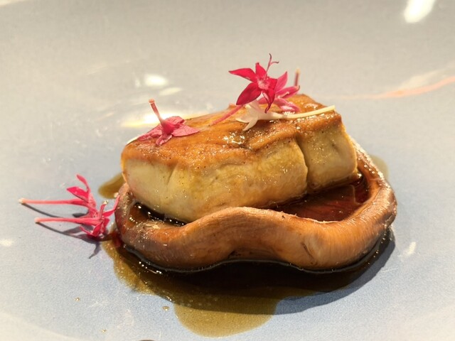アミカサダケ(モリーユダケ)の芯にホタテが詰めてありました。オマールエビとアミカサダケがモリーユソースでまさにザ・フレンチです。フォロワーさんが茸食べてるの初めてみました(笑)