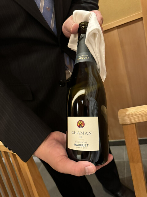この日は仲良しレビュアーさんと最高に美味しいお鮨を食べてきました。料理の写真はNGですが、頼んだ飲み物の撮影は可能なのでシャンパンボトルの写真を撮ってきました。料理の美味しさは最初から最後まで唸るばかりで本当に素晴らしく、メモをとってきました。