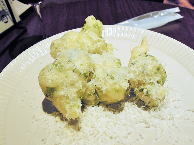 た物を油で揚げ、それに香り高いチーズを振りかけた料理は、ワインと