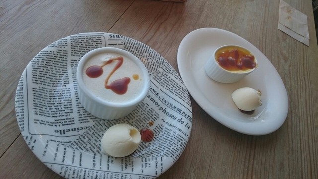 胡麻ブランマンジェ(左)とカボチャのカタラーナ(右)