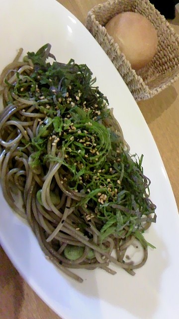 ・黒ゴマと白みそのパスタ(青シソがきいてておいしい)