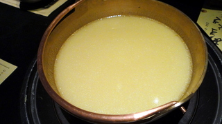 ↓そしてお次に満を持して登場したのが、「幻の天草大王天然コラーゲン水炊き」!しばらくグツグツと煮込むと次第に白濁スープに変身いたします!