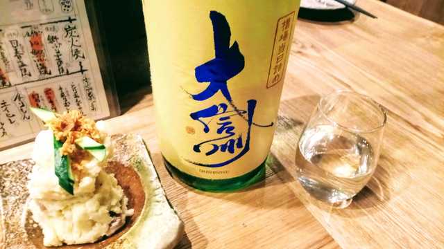 ここで日本酒2杯目は、大信州(だいしんしゅう)純米吟醸番外品(グラス590円)を追加!オツマミは「ポテサラ」と最後にお刺身盛り合わせ1290円をオーダー!