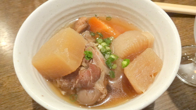 ↓オツマミ1品目はこの日の「朔煮」(さくに)手羽元煮300円(税別、以下同)!