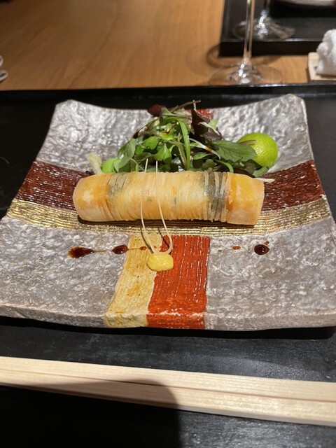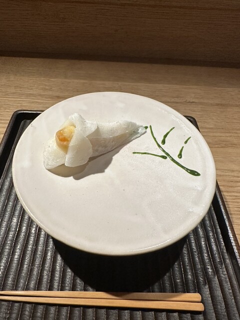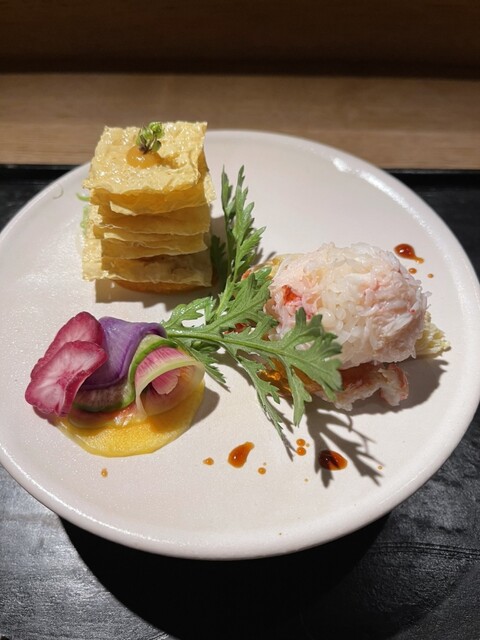毛ガニの手毬寿司、湯葉と雲丹