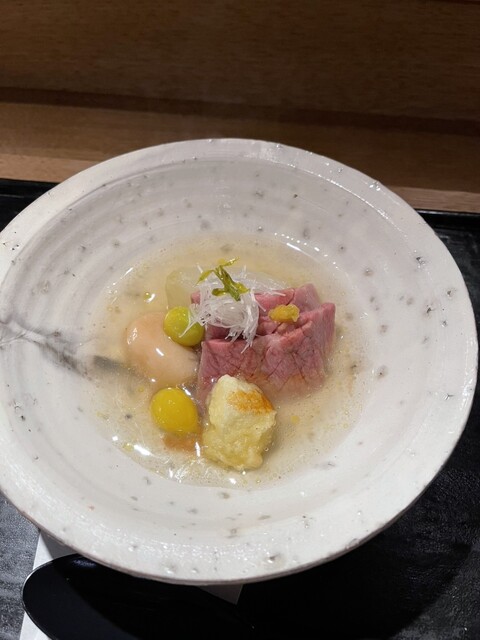 錦糸瓜焼茄子 大和牛 花かぼちゃ大和ルージュ・・・ 白もろこしの茶碗蒸し