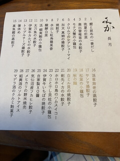 伊賀牛やハムスイコーも美味しく〆のフカヒレ餃子は相変わらず絶品です。